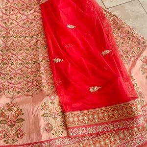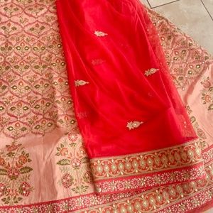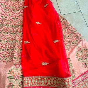 Absolutely gorgeous shades of red orange and peach colors with beautiful gold embroidery.