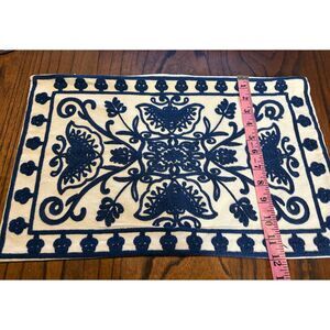 Elevate your space with this elegant blue and cream embroidered lumbar pillow cover. The intricate traditional design adds timeless charm to any décor style—from boho and cottagecore to coastal and classic. Perfect for accenting a sofa, armchair, or bed.