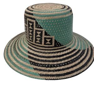 Traditional Woven Straw Wayuu Hat Black Blue Size Large Summer Hat