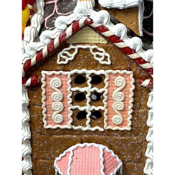 Add a touch of holiday magic to your home with this Traditions Vintage Large Lighted Gingerbread House featuring Santa! This charming piece is sure to bring joy and festive cheer to any room. The approximate dimensions for the gingerbread house are 14"L x 10"W x 12"H Perfect for collectors or anyone who loves unique Christmas decorations. The warm glow of the lights creates a cozy and inviting atmosphere. It is in great vintage condition-in its original box! Get ready to spread some holiday cheer with this delightful Gingerbread House! If asking price is paid, we will cover the additional postage or label(s). If you want to negotiate the pricing, then you will have to cover the additional shipping. #871