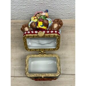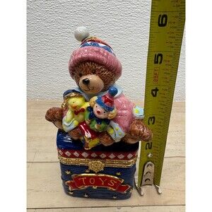 Traditions Porcelain Decorative Trinket Box Hand Painted Teddy Bear With Toys