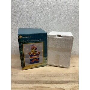 Traditions Porcelain Decorative Trinket Box Hand Painted Teddy Bear With Toys.New-open box,no defects.