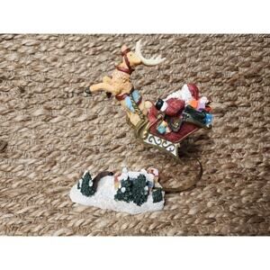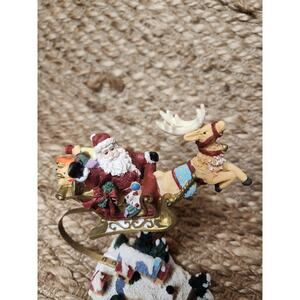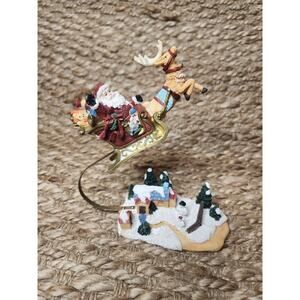 Traditions Vintage Santa & Sleigh Flying Over Village Christmas Holiday Figurine