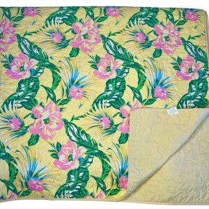 FEATURES: Bright tropical print reversible quilt with all-over hibiscus and palm pattern. Full size includes quilt and 2 standard shams. Coastal grandma, Golden Girl vintage Florida vibes!