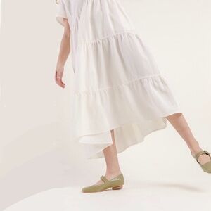 Tradlands Chalet Tiered Dress in Birch (Off-White) XXS Linen Tercel New NWT