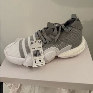 Trae Young Adidas Size 8 Men’s Sneakers NWT Grey and White