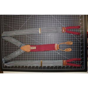Trafalgar / Adjustable Suspenders / OSFM / Gray with Pink Stripes / Elastic and leather. In great condition.