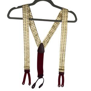 Trafalgar Cream & Burgundy Men's Suspenders With Floral Pattern & Leather points