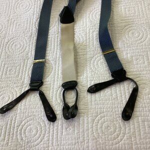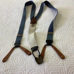 Trafalgar Mens Blue & White Elastic Suspenders With Leather Accents Adjustable L