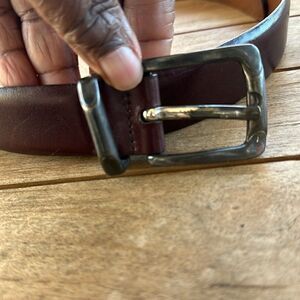 Wine men’s italian made cortina leather belt with a smoked silver belt buckle. In VGUC.