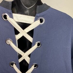 Trafaluc Zara Womens Navy Lace Up Back Long Sleeve Sweater Sz S