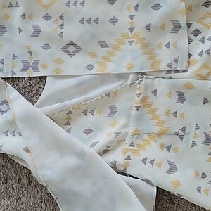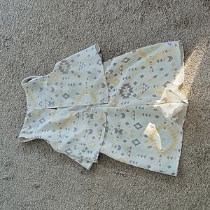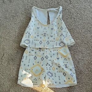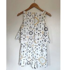 Trafaluc by Zara romper with a triangle and arrow print. This one-piece has the appearance of a two-piece set. Features a back zipper and open back panels. In great used condition.