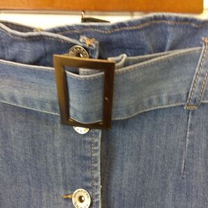 traffic Jean Wear button front blue denim paper bag look front waist skirt with belt.