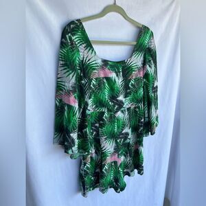 Traffic People Romper Bell Sleeves Tropical Floral Palm Leaves Print size M