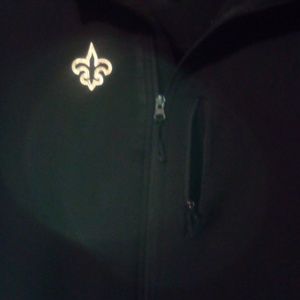 size XL Zip up jacket has 3 pockets, one of the pockets needs a little sewing.. other than that jackets still nice.