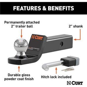 Trailer Hitch Mount, 2-Inch Ball, Lock, Fits 2-In Receiver, 7,500 lbs, 2" Drop