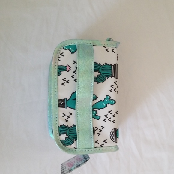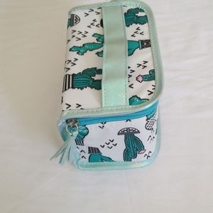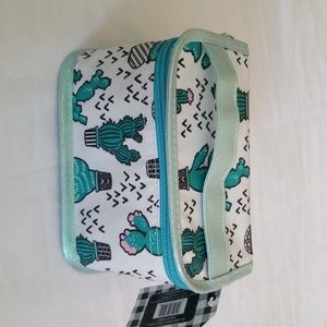 White train case with green catus print.