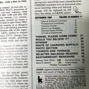 Enjoy a nostalgic journey through railroading history with the Trains Magazine of Railroading September 1984 edition. Includes tourist and tonnage features for enthusiastic railfans.