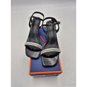 Trakxy Women's Rhinestone Open Toe Kitten Heel Transparent Sandals Size 40 Black