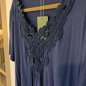 Tralibee Women's Dusty Purple Top with Crocheu Lace Detail NWT
