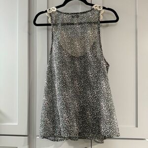 Tramp Gray Floral Sheer Sleeveless Top with Ivory Crochet Detail, Size 2X