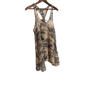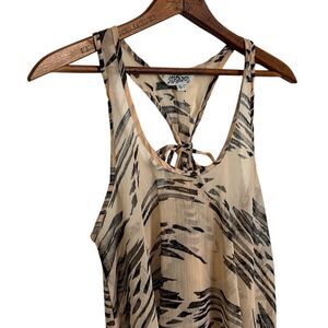 Tramp Scoop Neck Sheer Tied Racerback Tunic Tank Top Cream Black Small