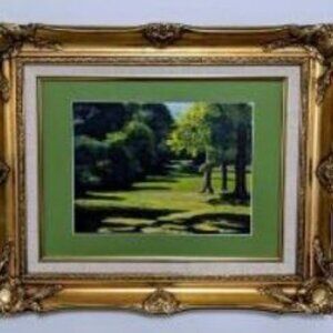 I took this photo at a soccer camp my grandson was attending. The major soccer fields, where over eighty children were playing with all of their vigor, were nearby but separate. When I first arrived, I was astounded by how serene and quiet this place was compared to the soccer fields. After I finished painting it, I was thinking of a title, and I settled on "Tranquility" because of the serene vibes I was getting. I feel calm and peaceful even now when I see it hanging in my studio.