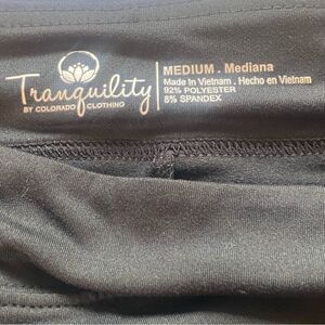 Tranquility By Colorado Clothing Black Skort Size Medium. Excellent pre-owned condition. Pull on skort. Black underlying shorts. Vented sides. Measures approximately waist 30", length 15".