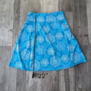 Tranquility Aqua Blue Mandala Print A-Line Stretch Skirt - Size Small