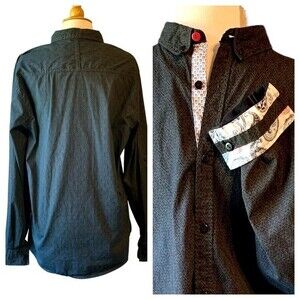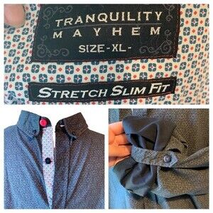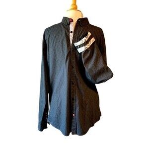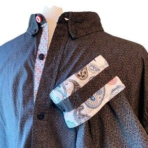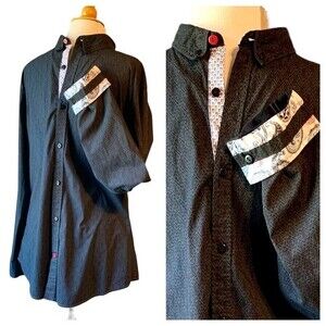 Tranquility Mayhem Mens Black Paisley Button Down Statement Cuff Shirt - XL