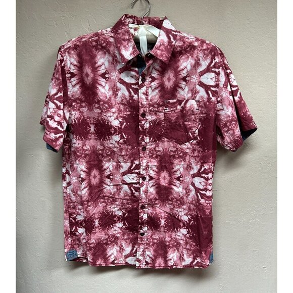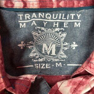 Tranquility Mayhem Men's Size Medium Red Tie-Dye Short Sleeve Button Up Shirt