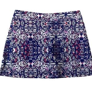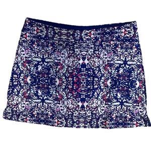 A vibrant Skort featuring a complex, symmetrical design with intricate swirls and curves throughout, suitable for casual or resort wear. Golf Pickleball Tennis and more