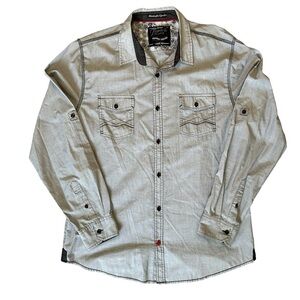 Tranquility and Mayhem Premium Threads NWOT button up, untuck shirt with optional roll up sleeves.
