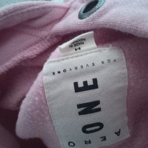 This is a pink, white, and blue Trans pride hoodie. It's a medium and is pre-owned. It was originally purchased at aero. There is a very small faint marking on the back.