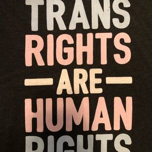 Trans Rights are Human Rights t-shirt Size large 19” across chest, 27” long? Fitted style.
