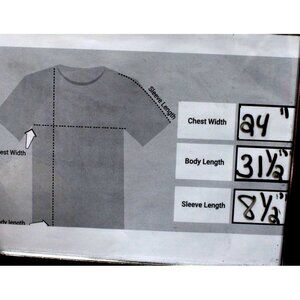 Chest width = 24 inches, Body length = 31.5 inches, Sleeve length = 8.5 inches