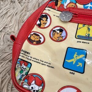 TransVersion Funky Funny Plastic Purse. Super kitchzy and fun! Look at all the silly pics and phrases! A few light marks here or there, and a stain on the interior. Overall, still very highly functional and unique!