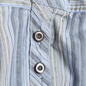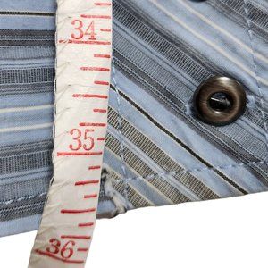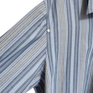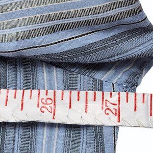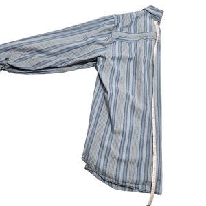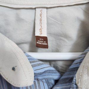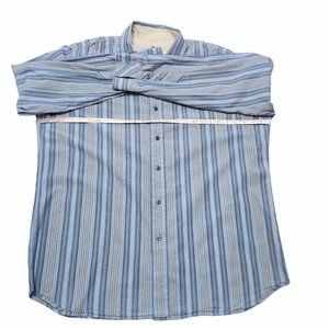 Transcript Blue Striped Button Up Cool Shirt Rough Edge Trim Back & Hem Size XL