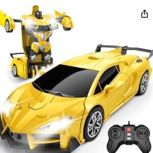 2-in-1 Transforming Fun - This remote-control car is an exciting transform toy that combines two cool forms – racing car and transform robot. Kids can smoothly transform two modes with a button, offering fast racing and robot battle. The rc car features auto demo and cool 360° spins, perfect for boy's playtime fun. With cool lights and sleek race car styling, boys will enjoy playing with the RC car from the first drive to the final spin.