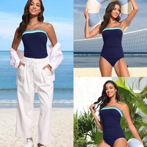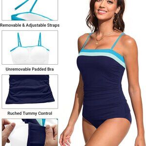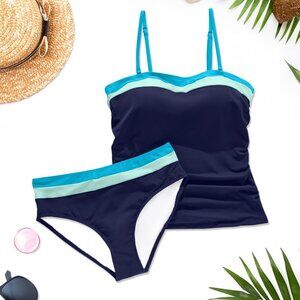 Transformative Bandeau Tankini Swimsuit - Comfort & Style in Navy Color Block