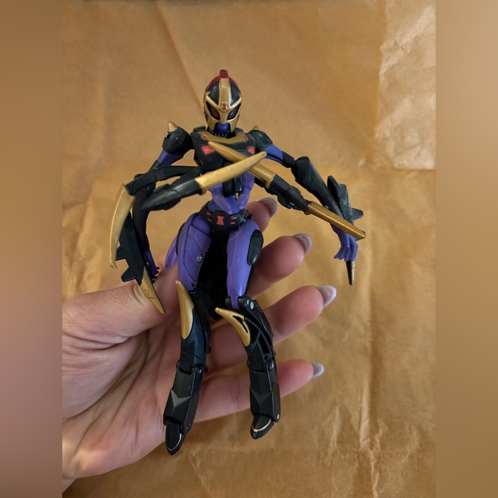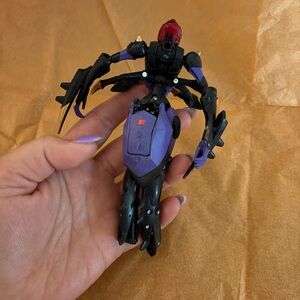 Blackarachnia, portrayed in TFA as a somewhat tragic victim of circumstance whose bitterness turned her a little evil. Formerly Elita-1, Blackarachnia was turned techno-organic in a mission that went terribly wrong, leaving her companions - Optimus Prime among them - believing she was lost and/or dead.