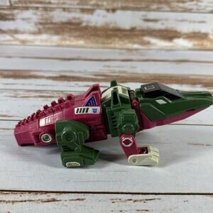Add a piece of Transformers history to your collection with this original 1987 G1 Headmaster Skullcruncher — the cunning Decepticon who transforms from robotic alligator to warrior robot. Known for his striking green and magenta color scheme, Skullcruncher is a standout from the Headmasters sub‑line.