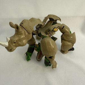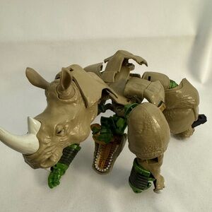 Unleash adventure with this transforming rhino action figure. Featuring a dynamic tan and green design, this toy is perfect for imaginative play. Transform and conquer with ease.
