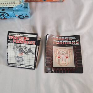 This is a Vintage G1 Transformers Original Action Figure from 1986. It is the Protectobot, Hot Spot, complete with original box, manual, insert, decoder strip, and accessories such as weapons and pieces for Defensor. It is in very good condition with no damage or defects.
