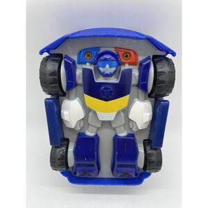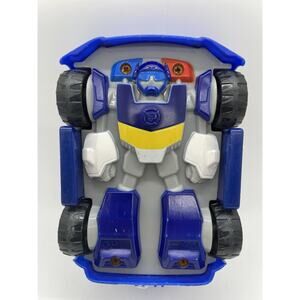 The Transformers Rescue Bots Chase The Police Bot 5" Playskool Heroes Junior car is a collectible toy from the Playskool brand. It features the character Chase, a police bot in a blue color scheme. This original toy is not a reproduction or modified item, making it a sought-after item for collectors and fans of the Transformers Rescue Bots series. Perfect for young fans of the show or as a fun addition to a collection of Transformers memorabilia.