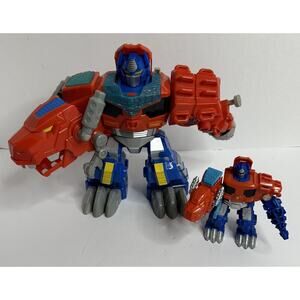 This is a set of Hasboro Hero Transformer, Rescue Bots with the big Optimus primal and the small 5 inch Optimus prime. The big Optimus primal lights up and talks (please see video) both transform well.