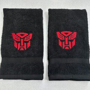 Transformers Autobots Towels Embroidered Hand Towel Set of 2 Black Bathroom Home Decor Robot Movie Lover Gift