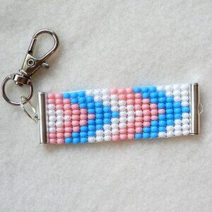 transgender, trans, LGBTQ, Trevor Project, Pride, queer, flag, seed beads, bead loom, keychain, key chain, handmade