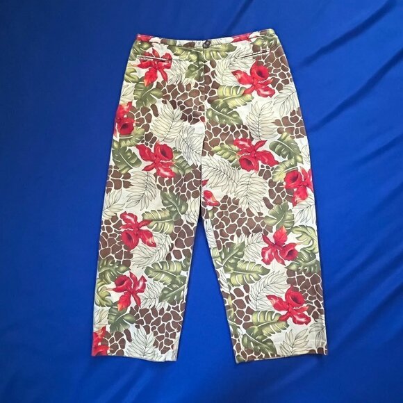 Transitions Animal Print Tropical Brushed Cotton Wide Leg Pant Capri - size 12