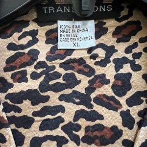 Transitions Women's Animal Print 100% Silk Button Down Top